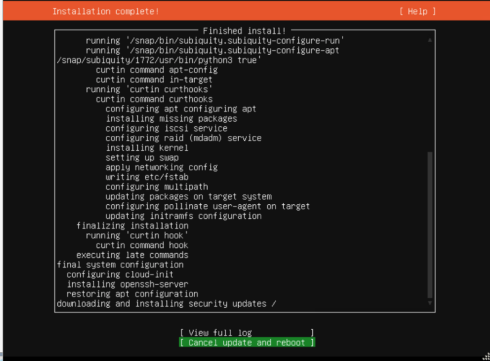 安装中 系统安装完毕后会出现安装安全更新,不要点cancel update and reboot,等待执行完成(较慢,有可能半个小时不止),下边选项出现reboot时,点击reboot重启。