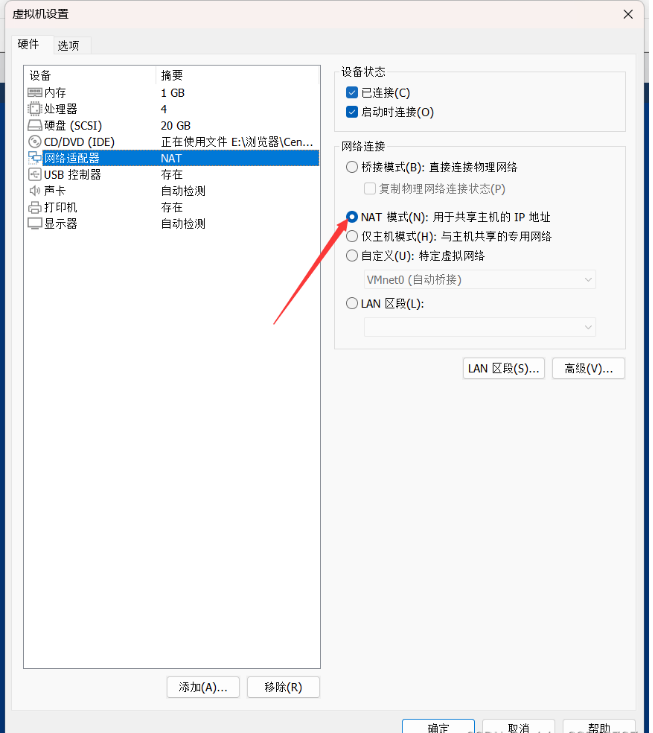 虚拟机设置选择NAT模式
